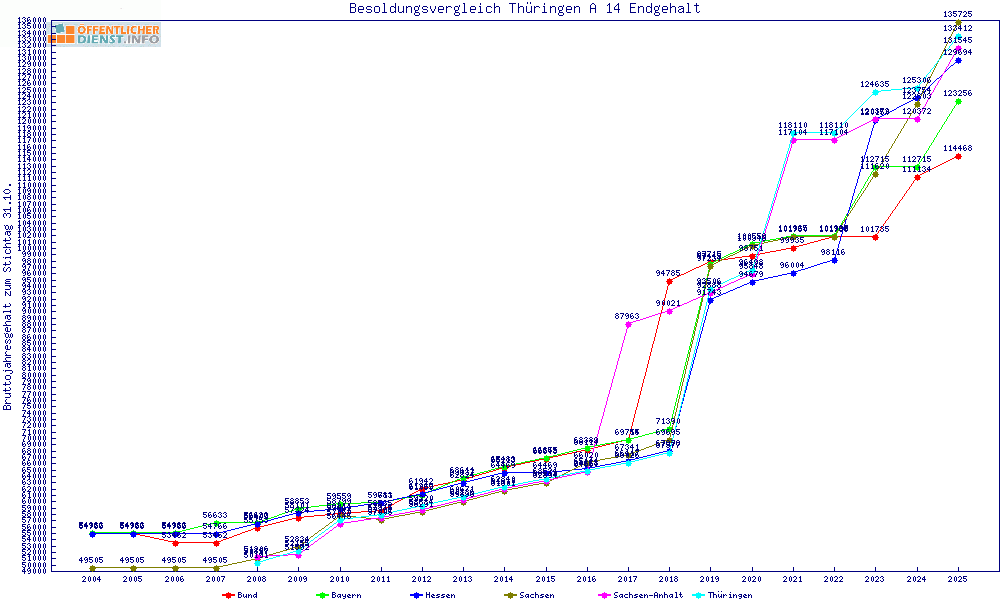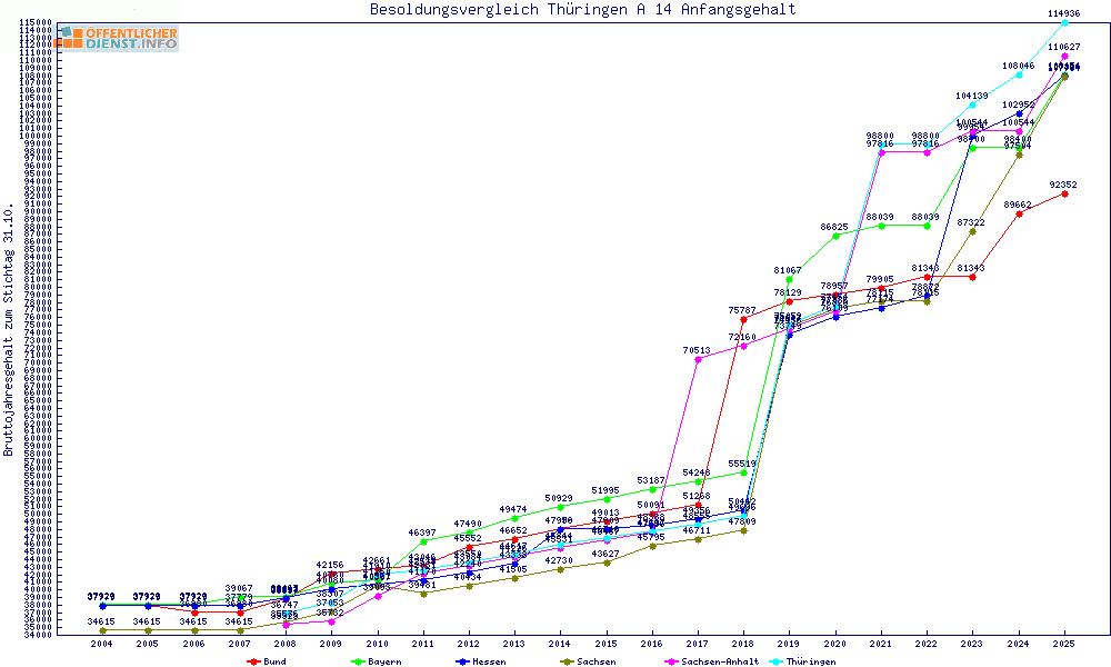 | Besoldungsvergleich A 14 im Jahr 2025 | Anfangsgehalt | ||||||