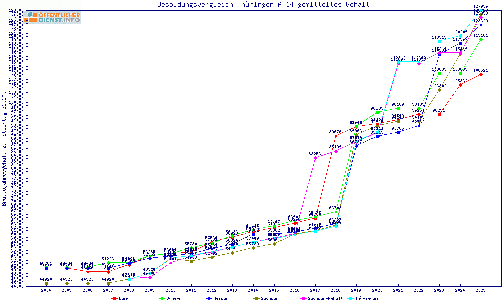 | Besoldungsvergleich A 14 im Jahr 2025 | gemitteltes Gehalt | ||||||