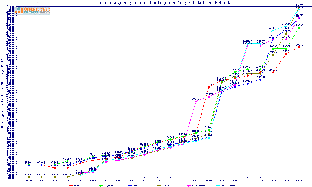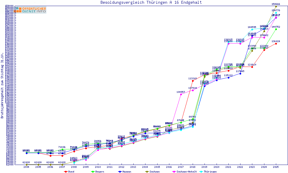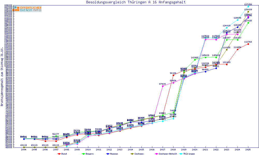 | Besoldungsvergleich A 16 im Jahr 2025 | Anfangsgehalt | ||||||