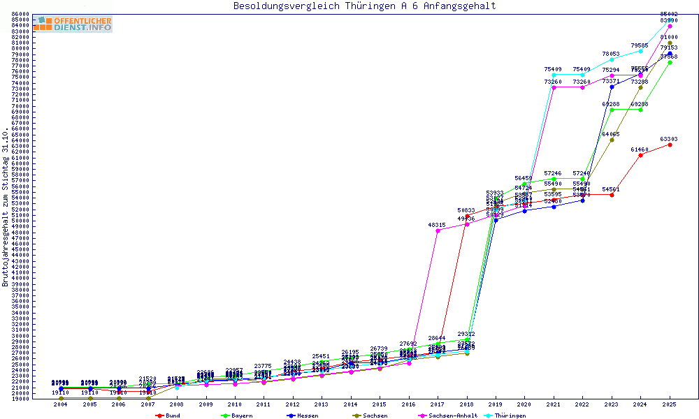 | Besoldungsvergleich A 6 im Jahr 2025 | Anfangsgehalt | ||||||