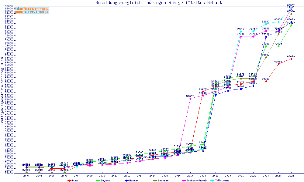 | Besoldungsvergleich A 6 im Jahr 2025 | gemitteltes Gehalt | ||||||