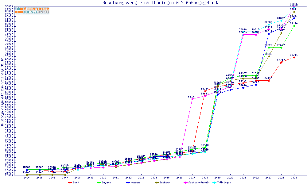 | Besoldungsvergleich A 9 im Jahr 2025 | Anfangsgehalt | ||||||
