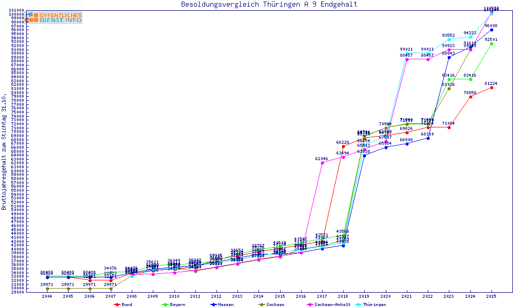 | Sachsen-Anhalt | 89.896 € | +370 € | +0.4% | +6119 € | +7.3% | ||