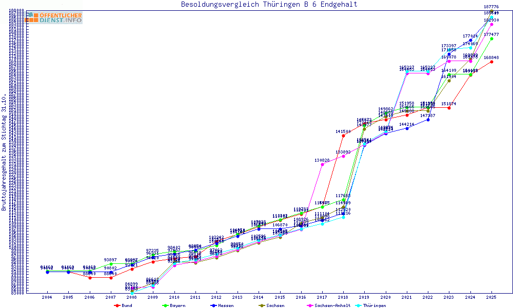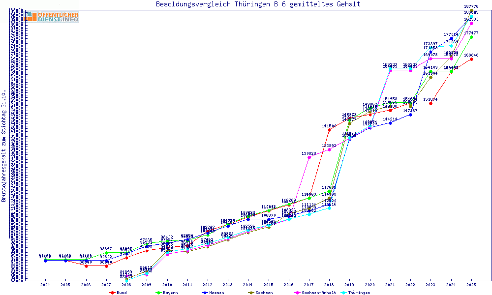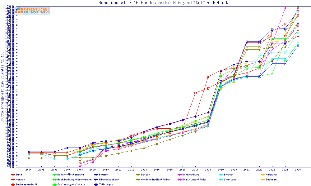 | Besoldungsvergleich B 6 im Jahr 2025 | gemitteltes Gehalt | ||||||