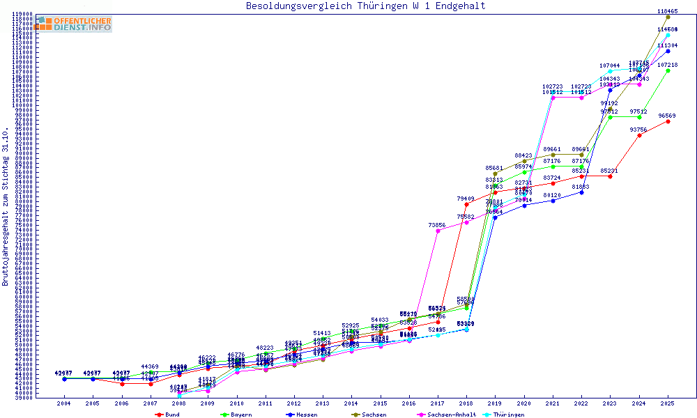 | Besoldungsvergleich W 1 im Jahr 2025 | Anfangsgehalt | ||||||
