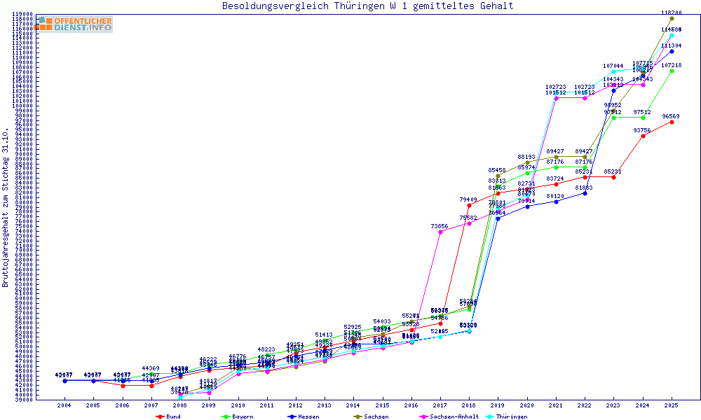 | Besoldungsvergleich W 1 im Jahr 2025 | gemitteltes Gehalt | ||||||