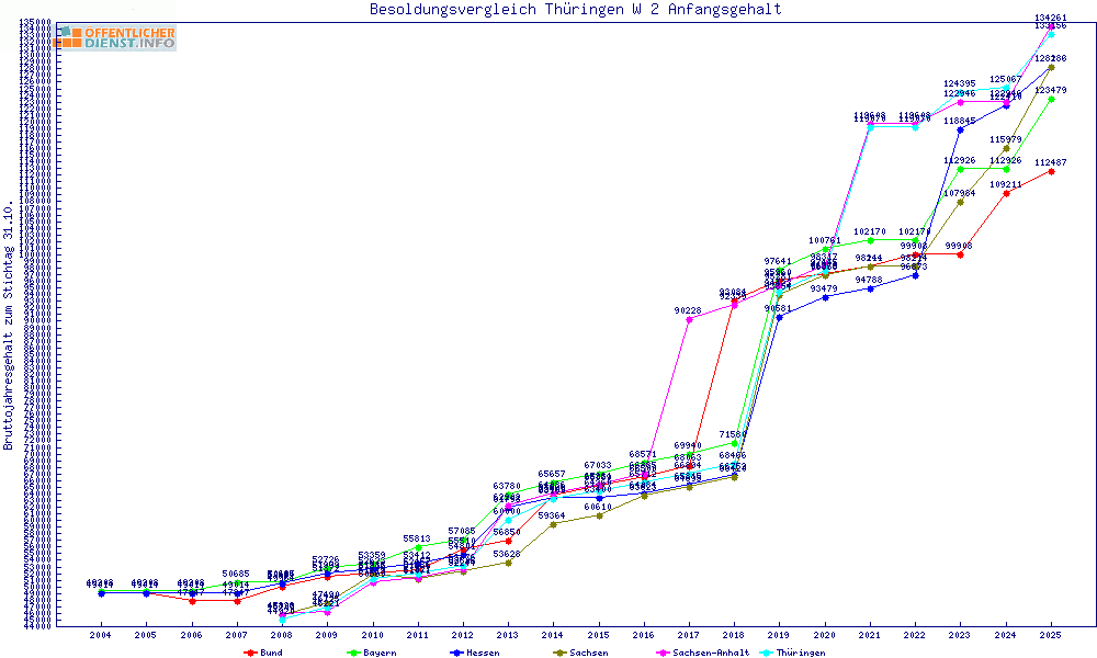 | Besoldungsvergleich W 2 im Jahr 2025 | Anfangsgehalt | ||||||
