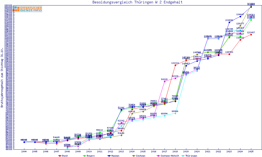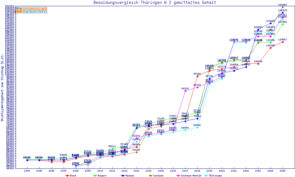 | Besoldungsvergleich W 2 im Jahr 2025 | gemitteltes Gehalt | ||||||